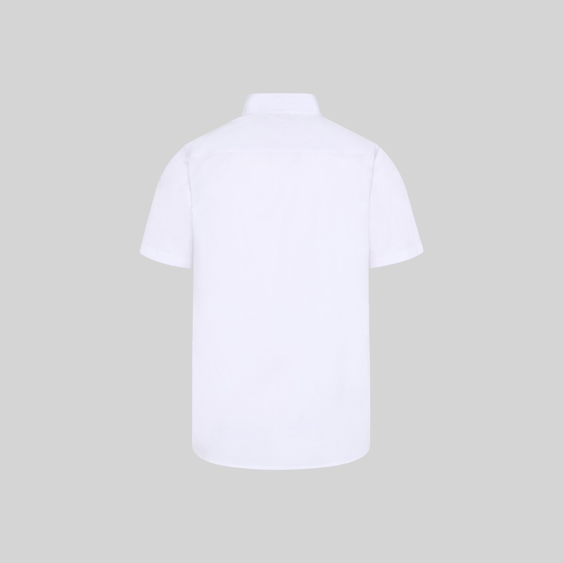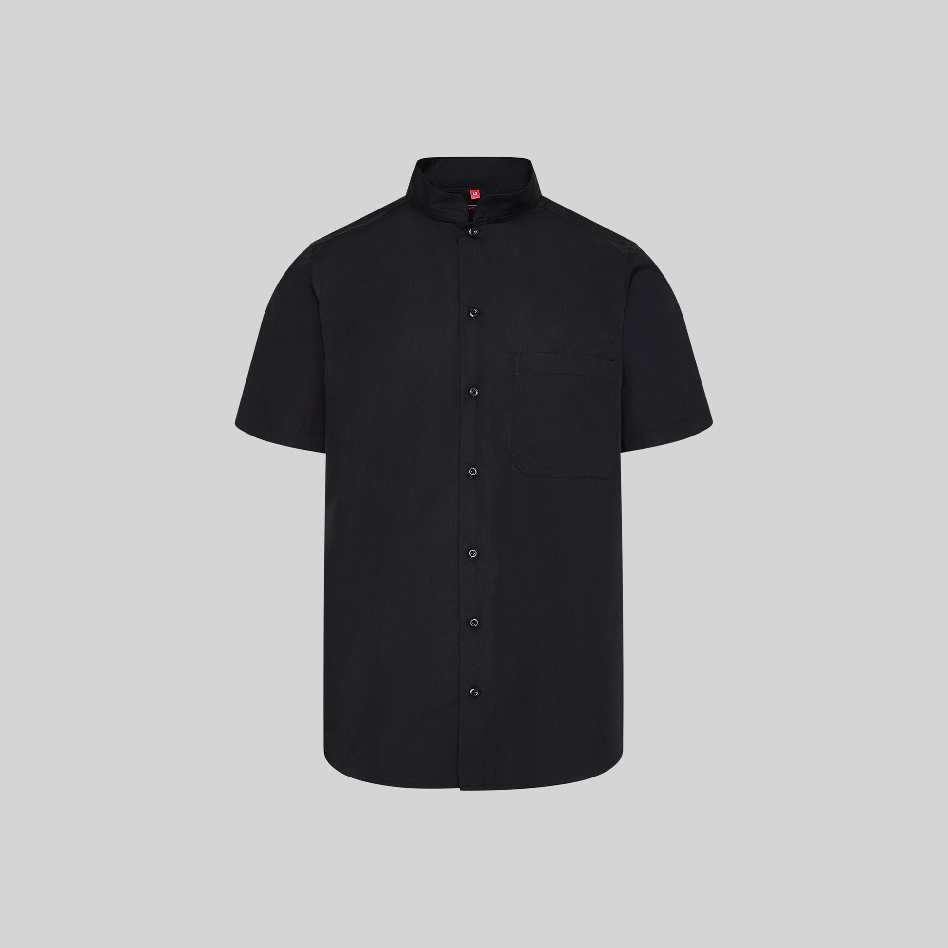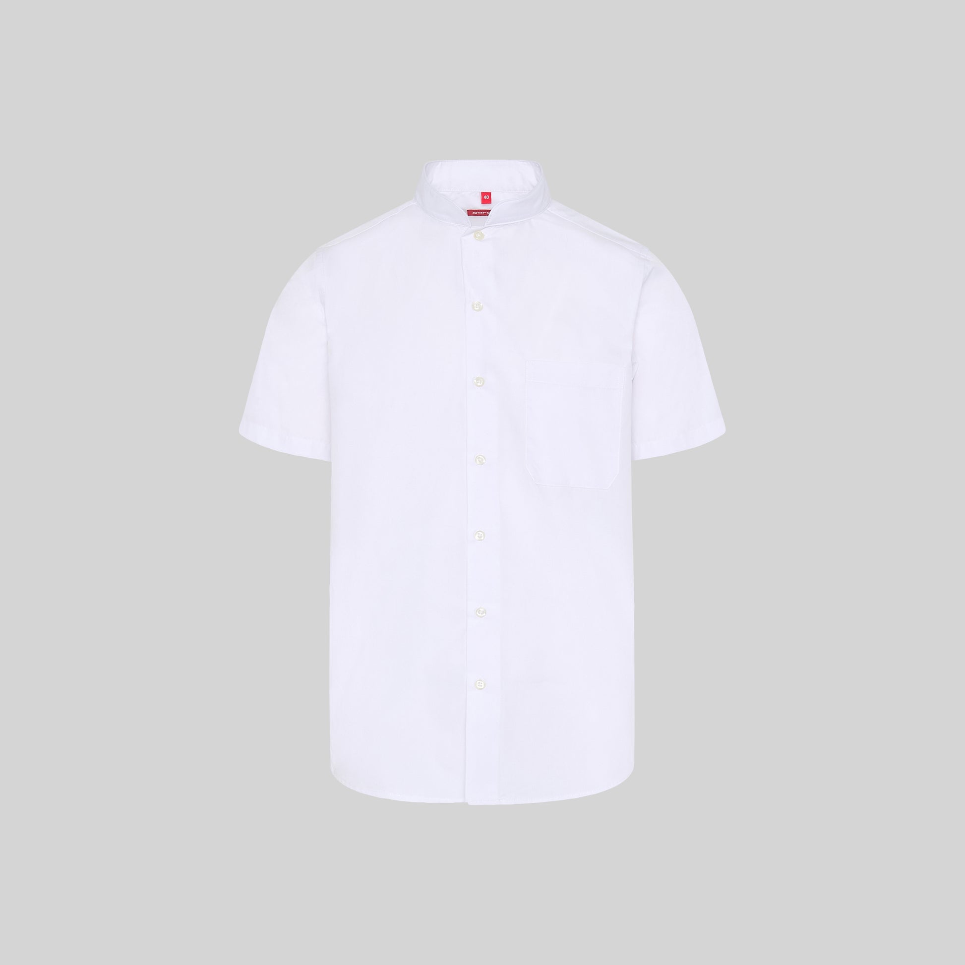 Camisa de hombre, para hostelería o restauración, en manga corta y con cuello estilo Mao confeccionada en tejido popelín.