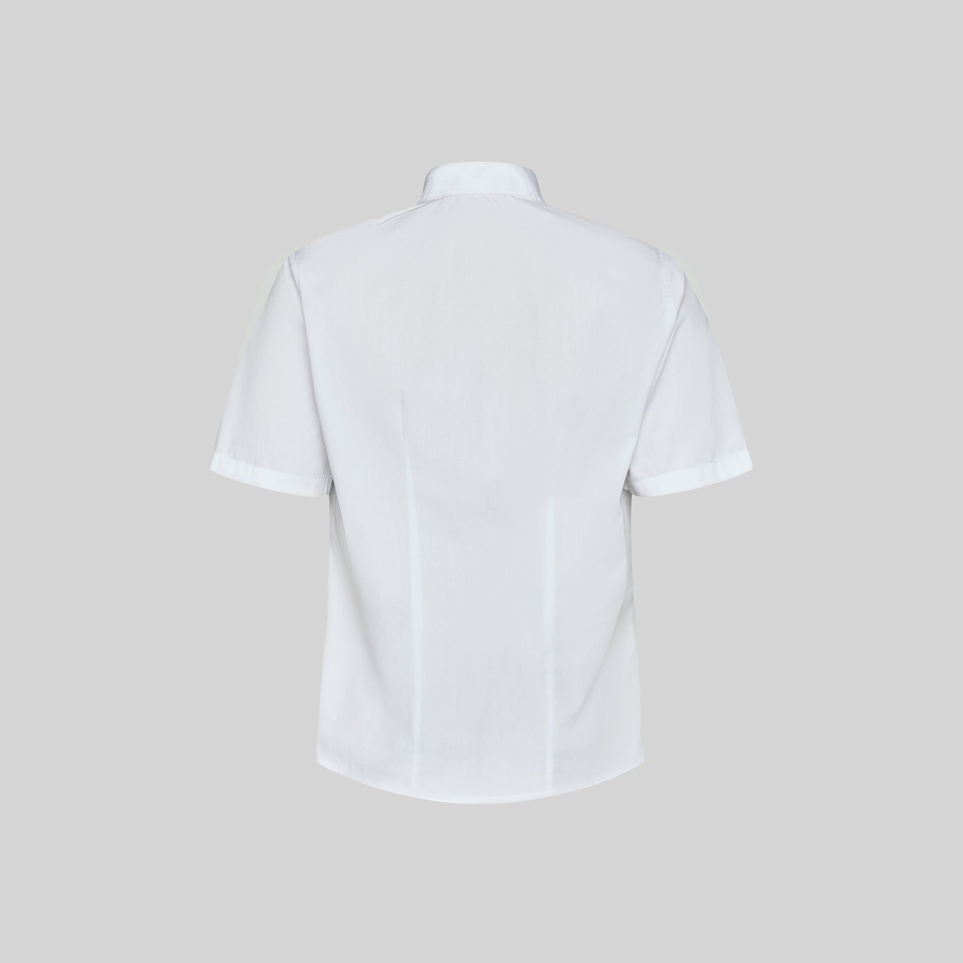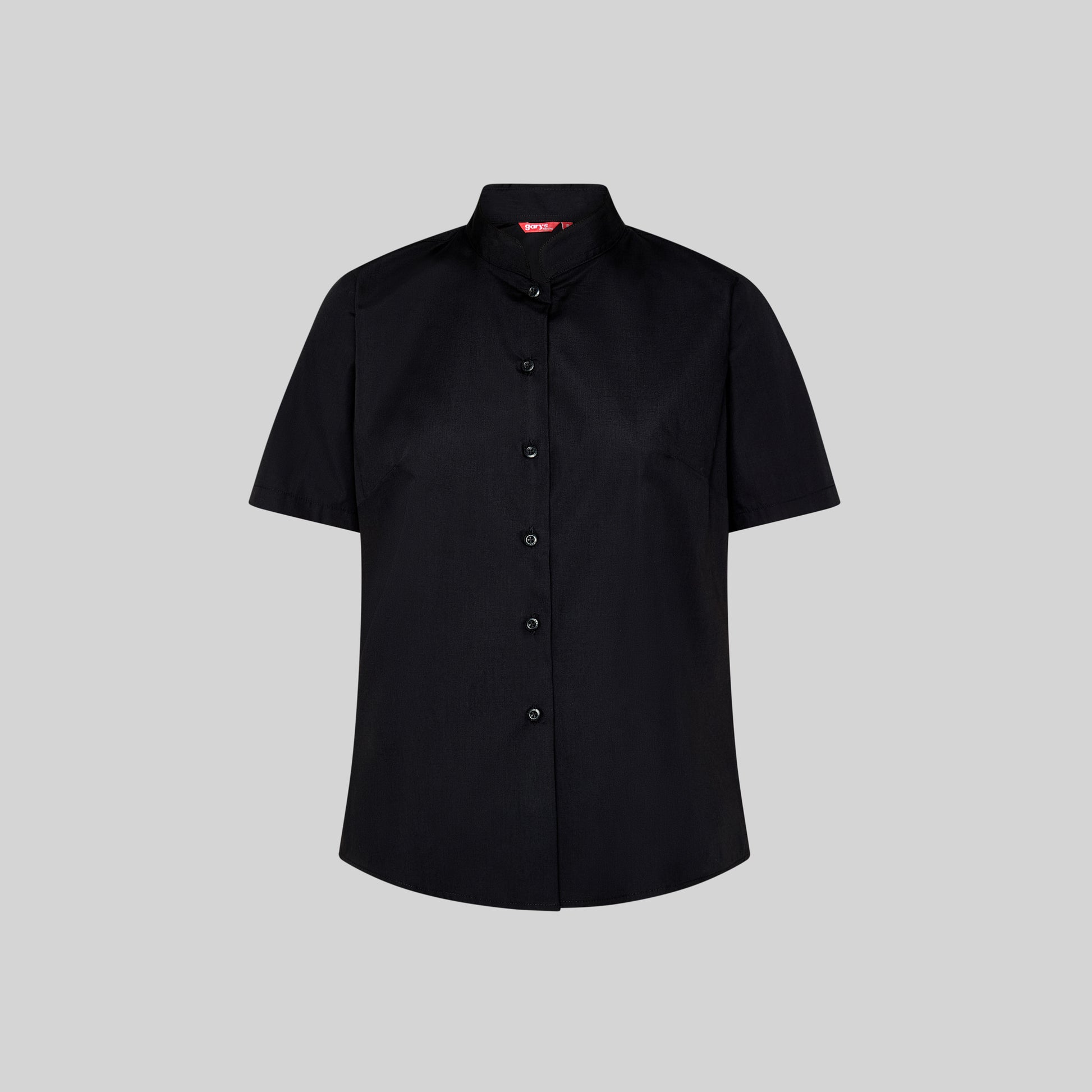 Camisa de mujer, para hostelería y restauración, en manga corta y cuello tipo Mao confeccionada en tejido popelín. Tiene pinzas en sisas, espalda y delantero.