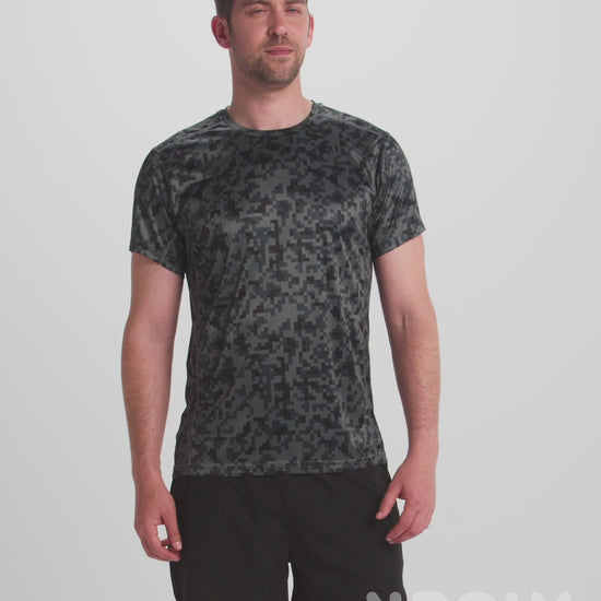 Camiseta técnica de manga corta estampada. Cuello redondo con cubre costuras de refuerzo a contraste en color amarillo flúor. Paneles laterales en interior de manga y en los hombros con remallado a tono. Tejido suave, ligero y transpirable, fácil secado.