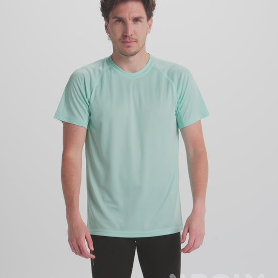Camiseta técnica de manga corta ranglán. Cuello redondo con cubrecosturas a tono. Paneles inferiores en mangas. Remallado a tono en sisa y panel de manga. Tejido CONTROL DRY.