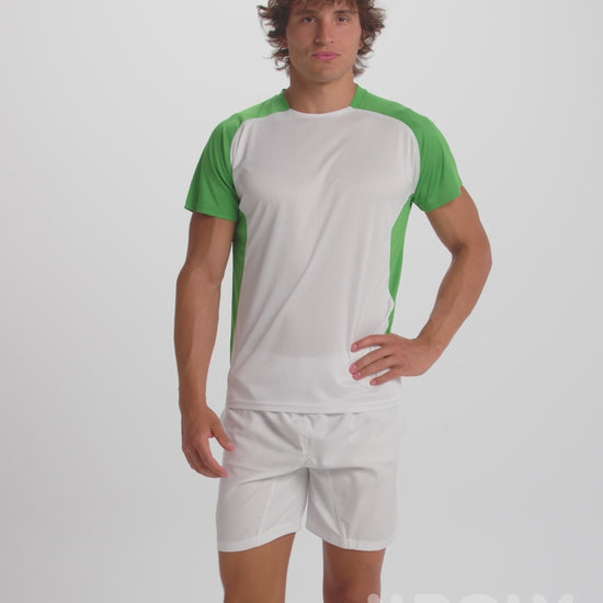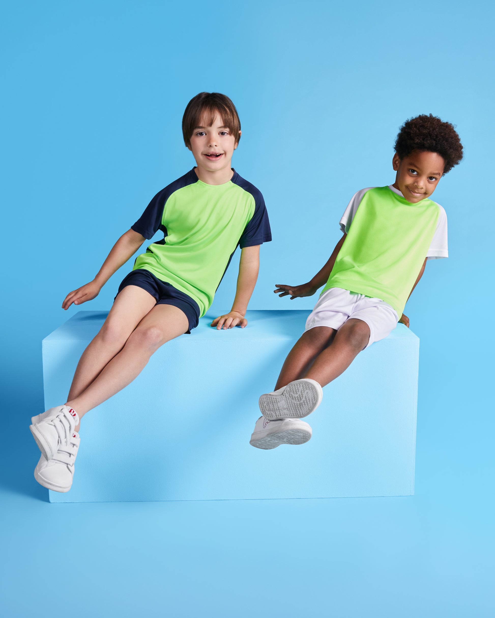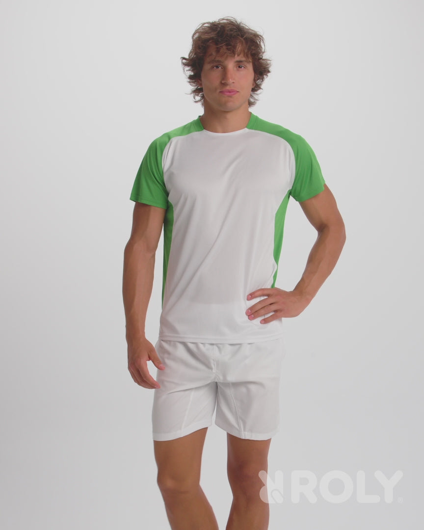 Camiseta técnica de manga ranglán transpirable. Cuello redondo con cubre costuras a tono. Tejido suave, ligero y fácil secado. Mangas y paneles laterales a contraste.