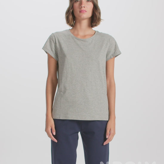 Camiseta de manga corta holgada con escote del mismo tejido. Cuello con cubrecosturas interior. Mangas con dobladillo asegurado. Costuras laterales.