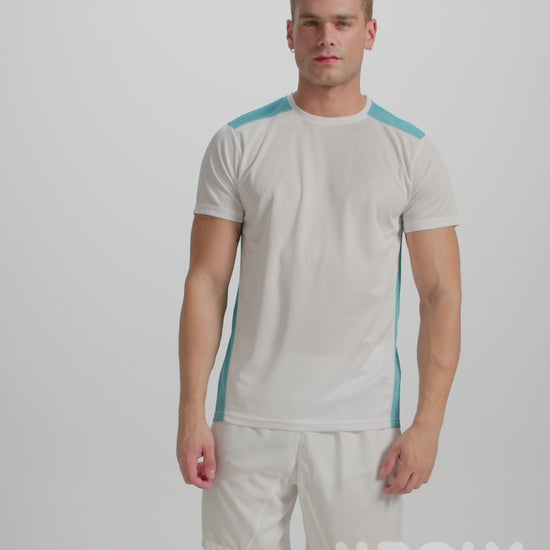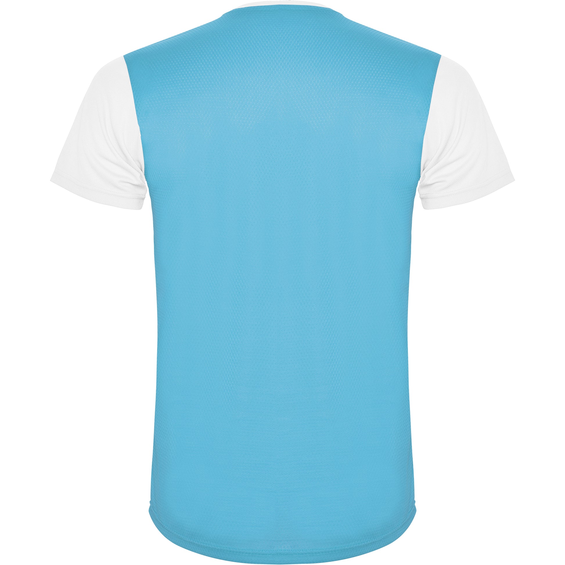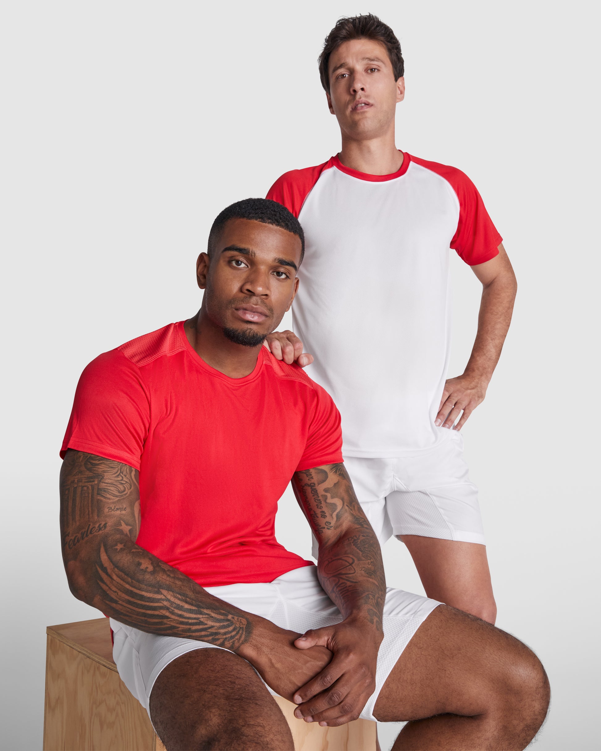 Camiseta técnica de manga corta, con cuello redondo. Combinada en espalda y hombros con dos tejidos de poliéster. Tejido principal frontal bird´s eye y tejido rejilla 3D transpirable en la parte trasera. Tejido preparado para la absorción de humedad. Pespuntes decorativos zigzag en hombros y costados frontales. Patronaje en la espalda ligeramente mas largo.