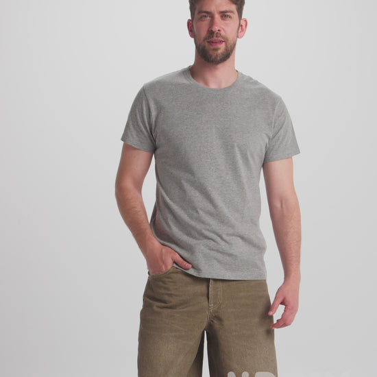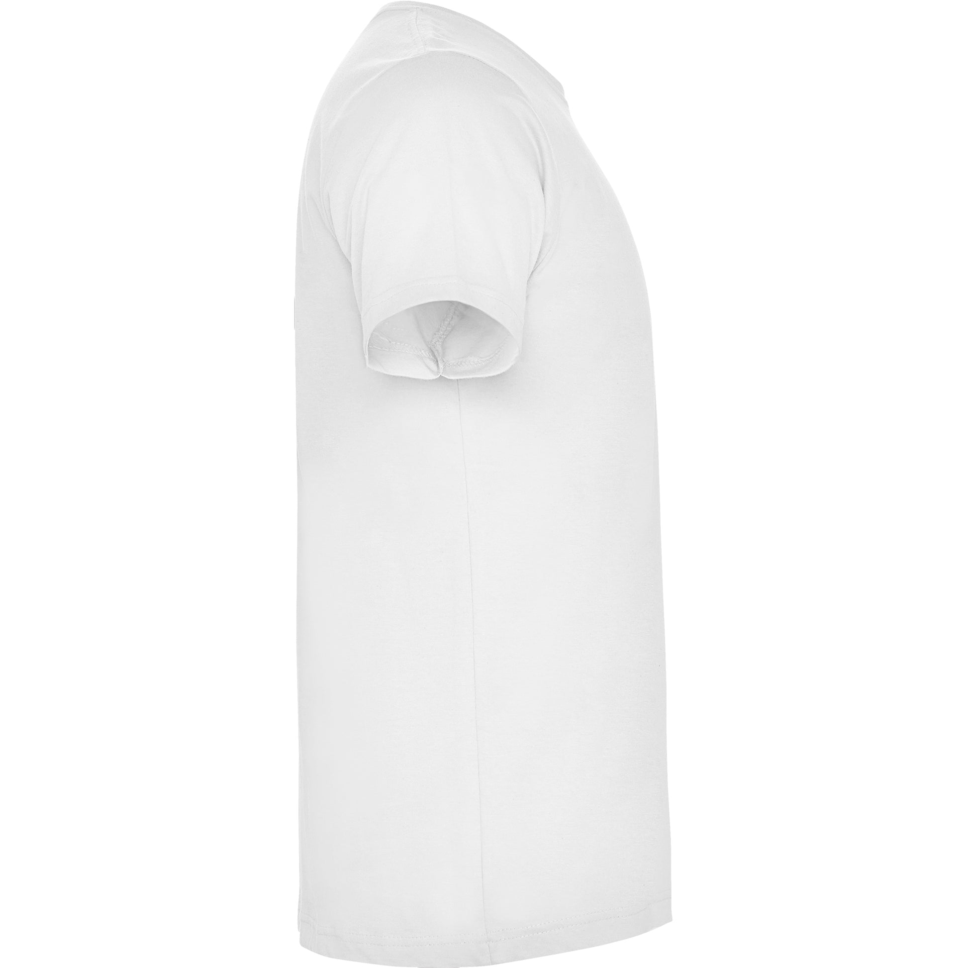 Camiseta de manga corta. Cuello redondo de 4 capas en canalé 1×1 con cubrecosturas de hombro a hombro. Costuras laterales.