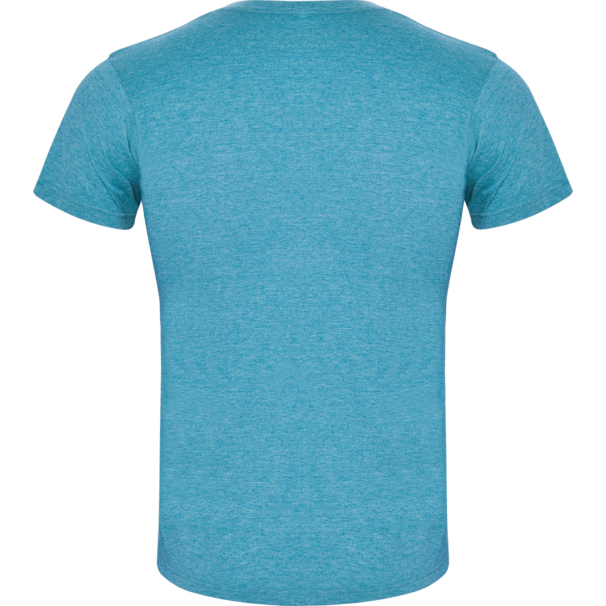 Camiseta de manga corta tubular con acabado vigoré. Cuello redondo en punto canalé 1×1 con cubre costuras interior.
