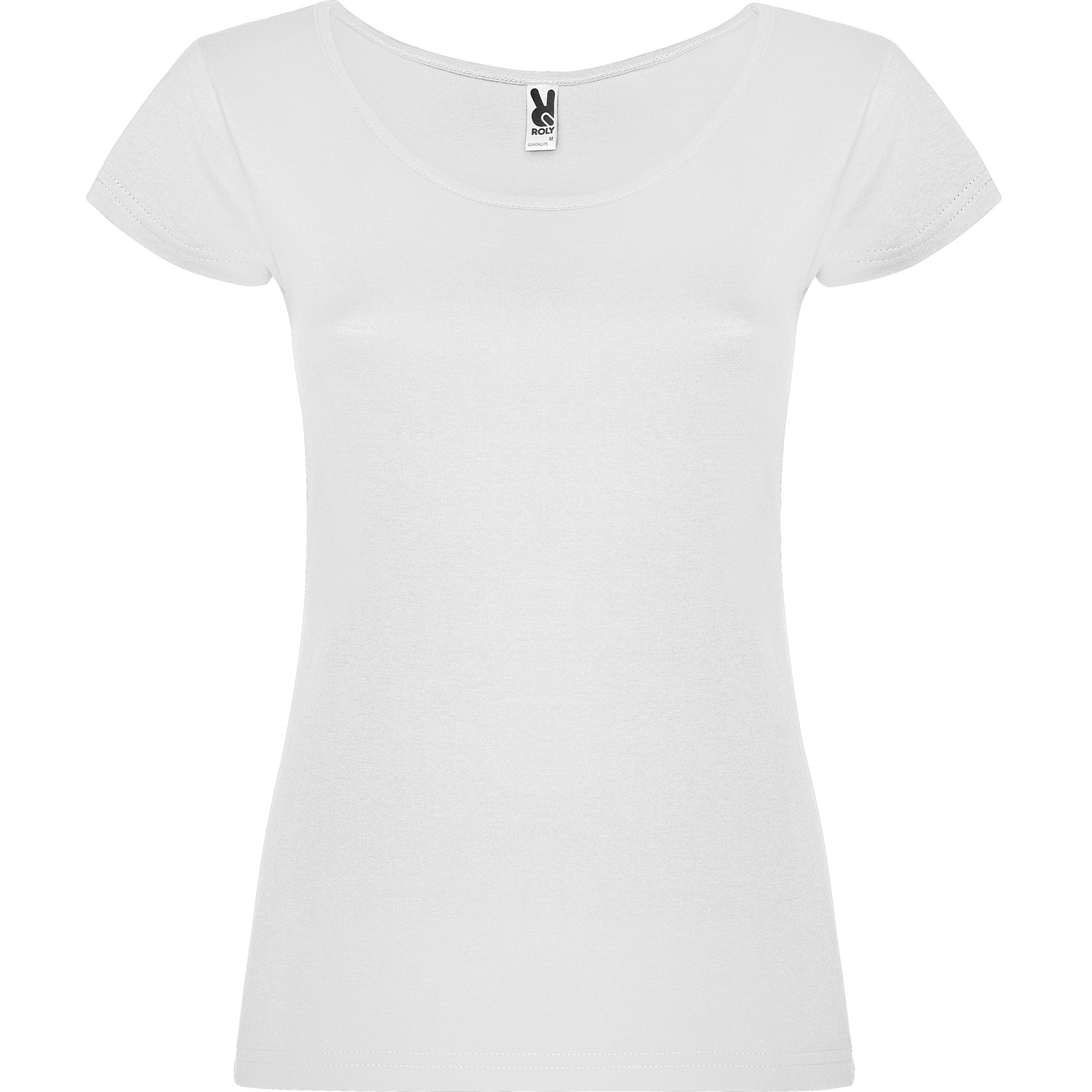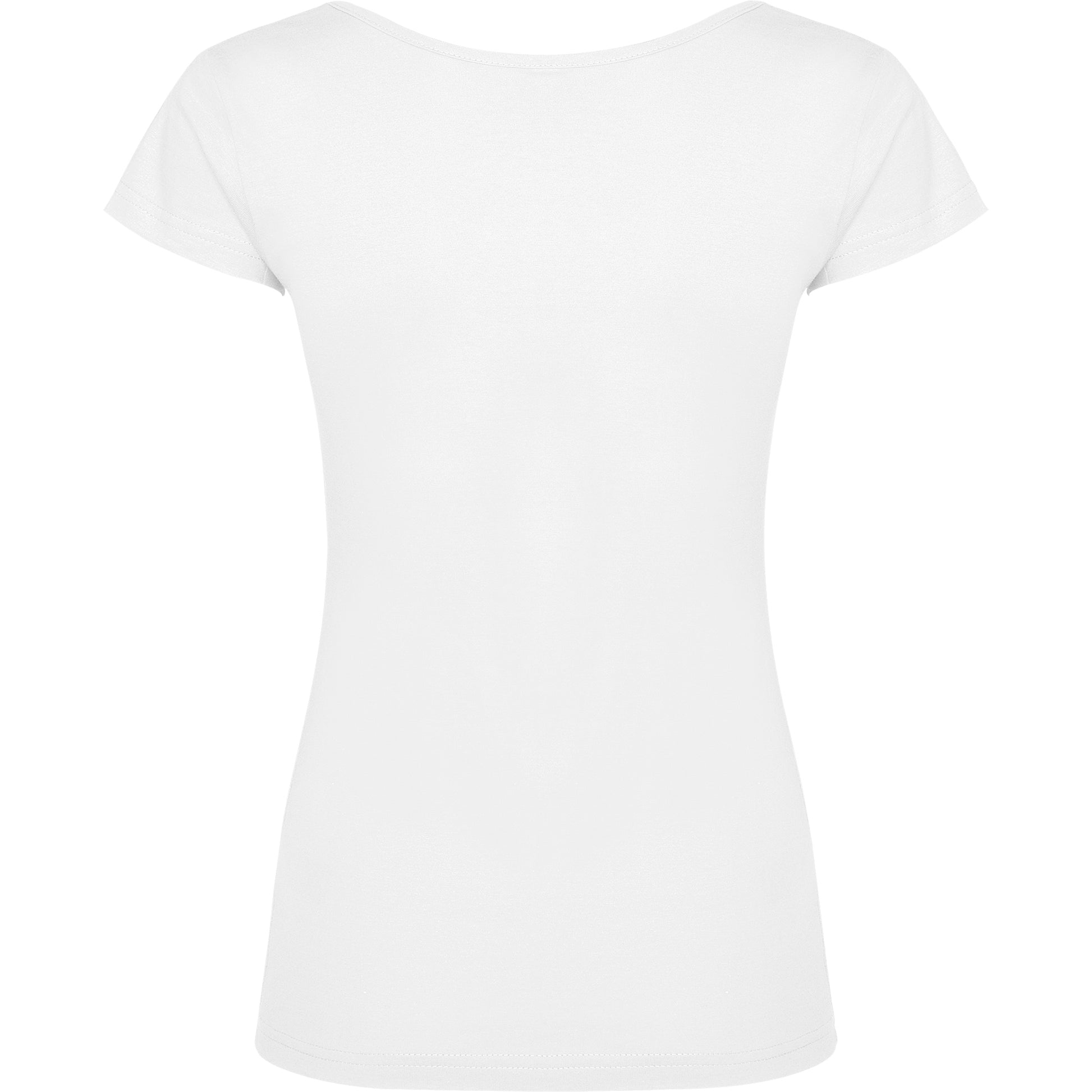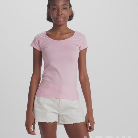 Camiseta de manga corta, escote redondo, ribeteado y pronunciado. Costuras laterales y de corte ajustado.