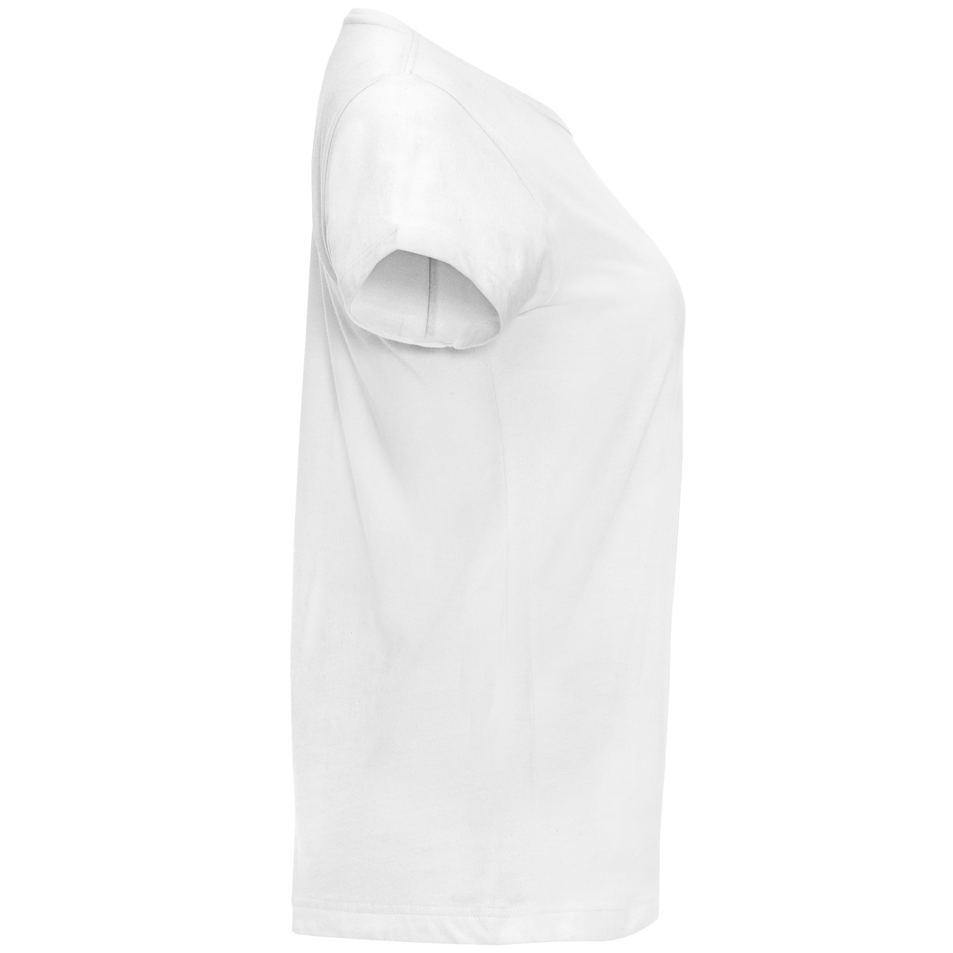 Camiseta de mujer de manga corta de diseño entallado con cuello redondo ribeteado en el mismo tejido y costuras laterales. Tejido de poliéster con tacto algodón.