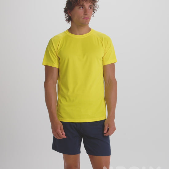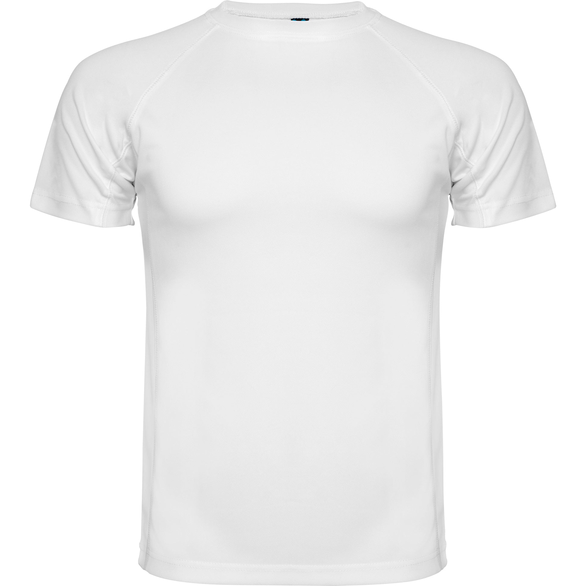 Camiseta técnica de manga corta ranglán. Escote redondeado con cubrecosturas. Cortes laterales con remallado al tono.