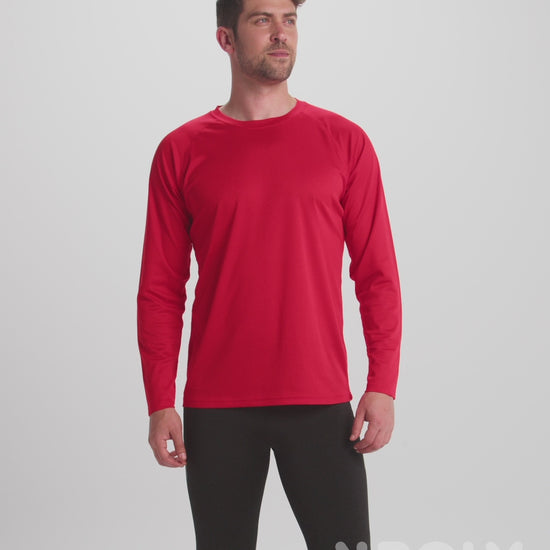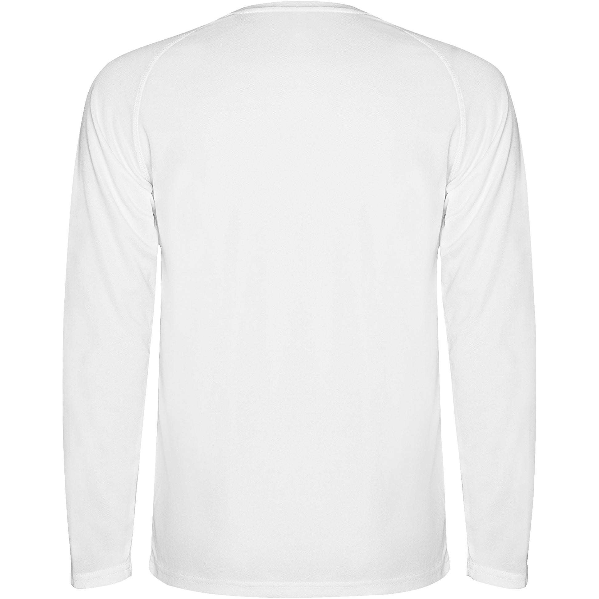Camiseta técnica de manga larga ranglán, remallada al tono en mangas (sin cortes laterales). Cubrecosturas en cuello. Tejido transpirable de fácil lavado y secado.