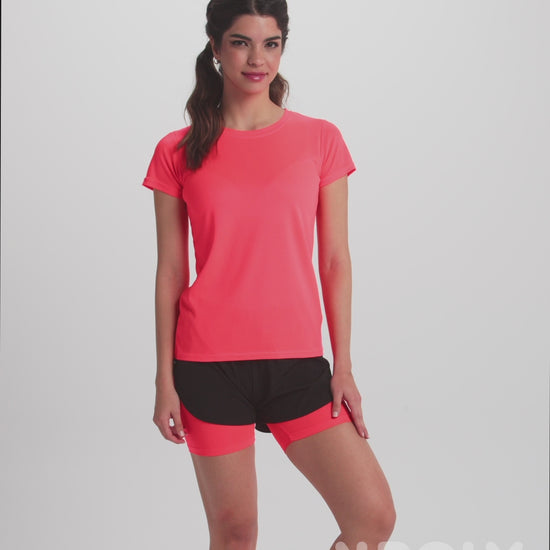 Camiseta técnica de manga corta. Cuello redondo con cubrecosturas. Corte entallado.