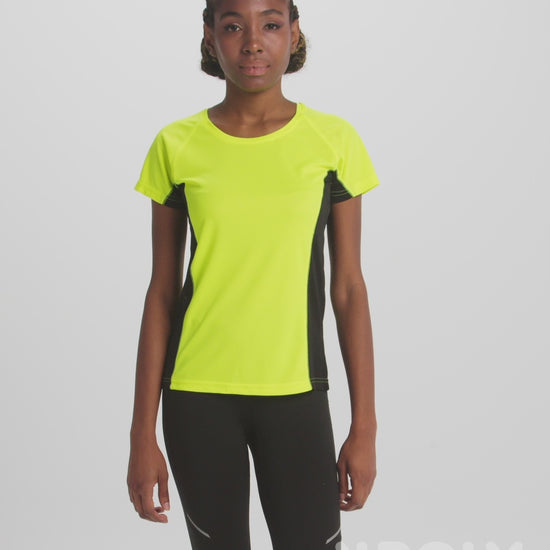 Camiseta técnica combinada con dos tejidos de poliéster, manga corta de estilo ranglán. Tejido principal bird’s eye y paneles laterales e interior de la manga con tejido microperforado. Cuello redondo con cubrecosturas de refuerzo en su interior. Camiseta de tejido confortable y fácilmente adaptable al cuerpo.