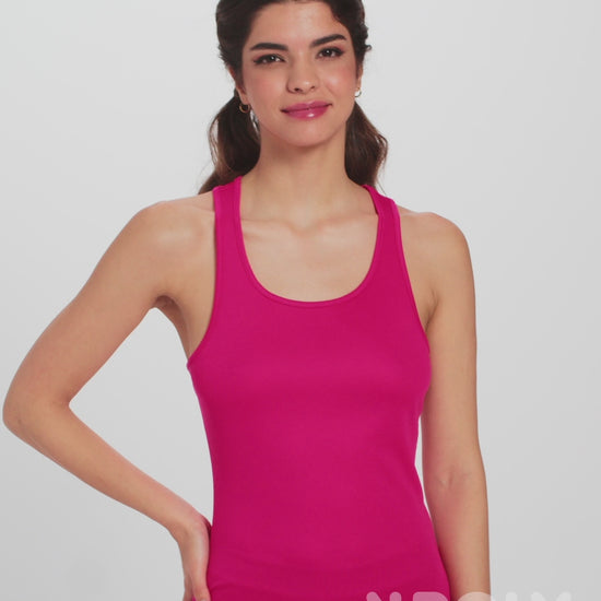 Camiseta técnica de tirantes entallada transpirable. Espalda nadadora con escote y sisas ribeteado.