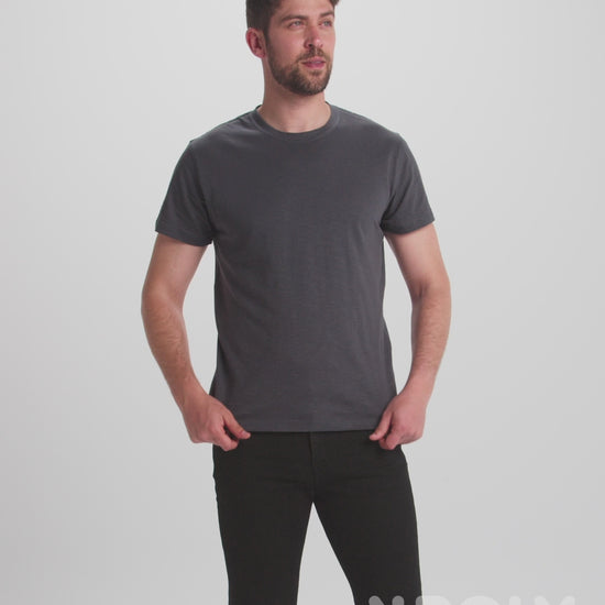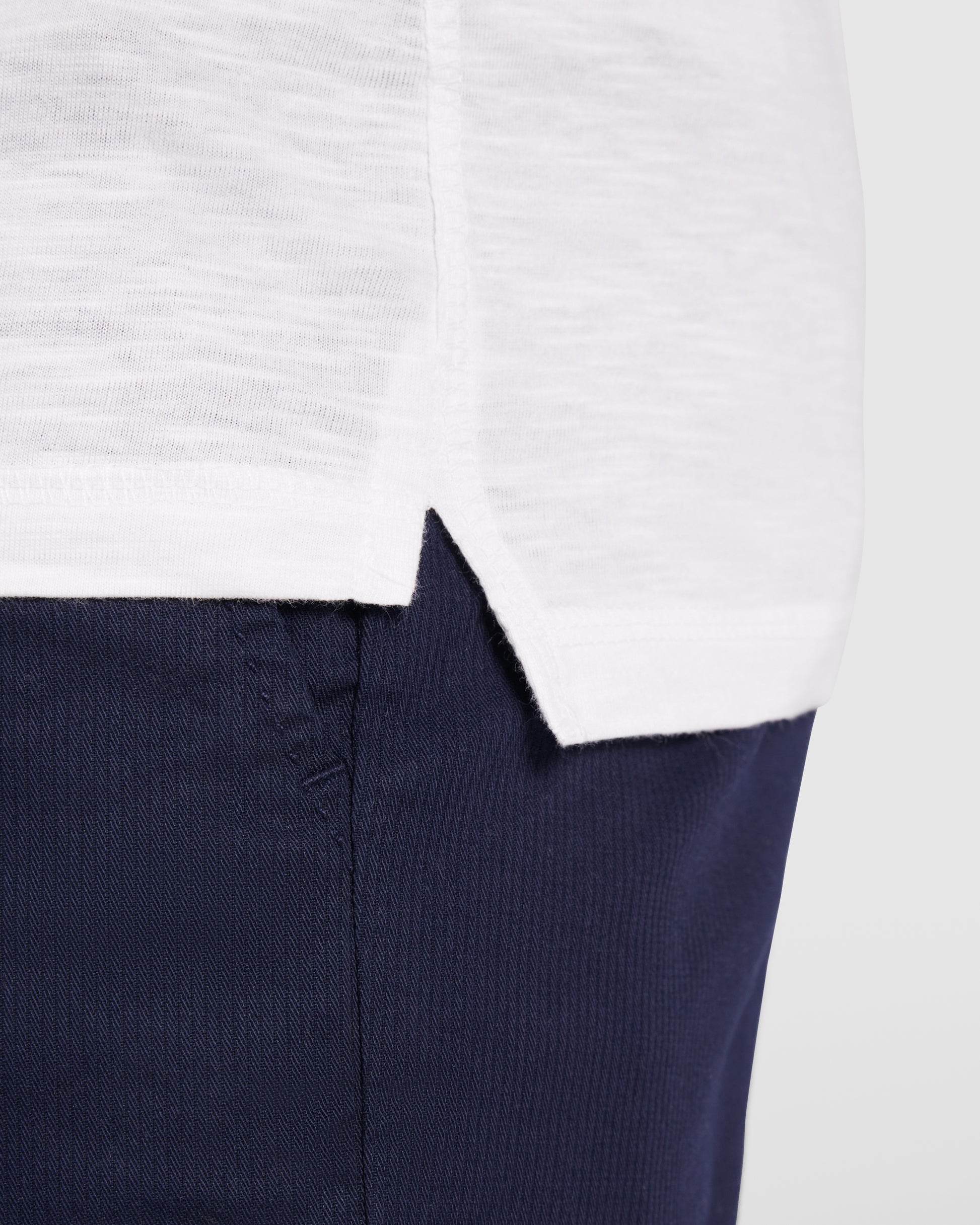 PRODUCTO QUE SE DESCATALOGARÁ CUANDO SE AGOTEN LAS EXISTENCIAS – Camiseta de manga corta, en tejido vigoré inclinado. Cuello redondo del mismo tejido. Cubrecosturas interior a contraste de hombro a hombro. Costuras laterales remalladas de adorno. Bajo con aperturas laterales y el patronaje de la espalda es ligeramente más largo que el delantero.