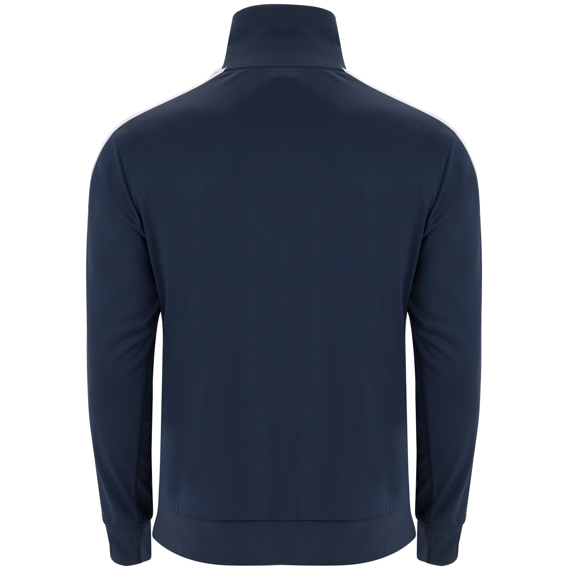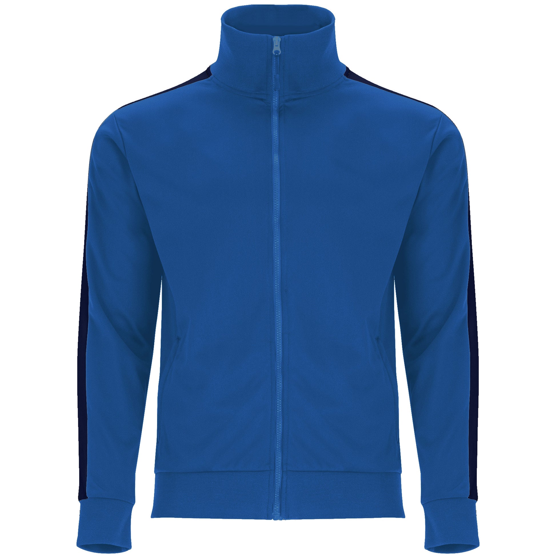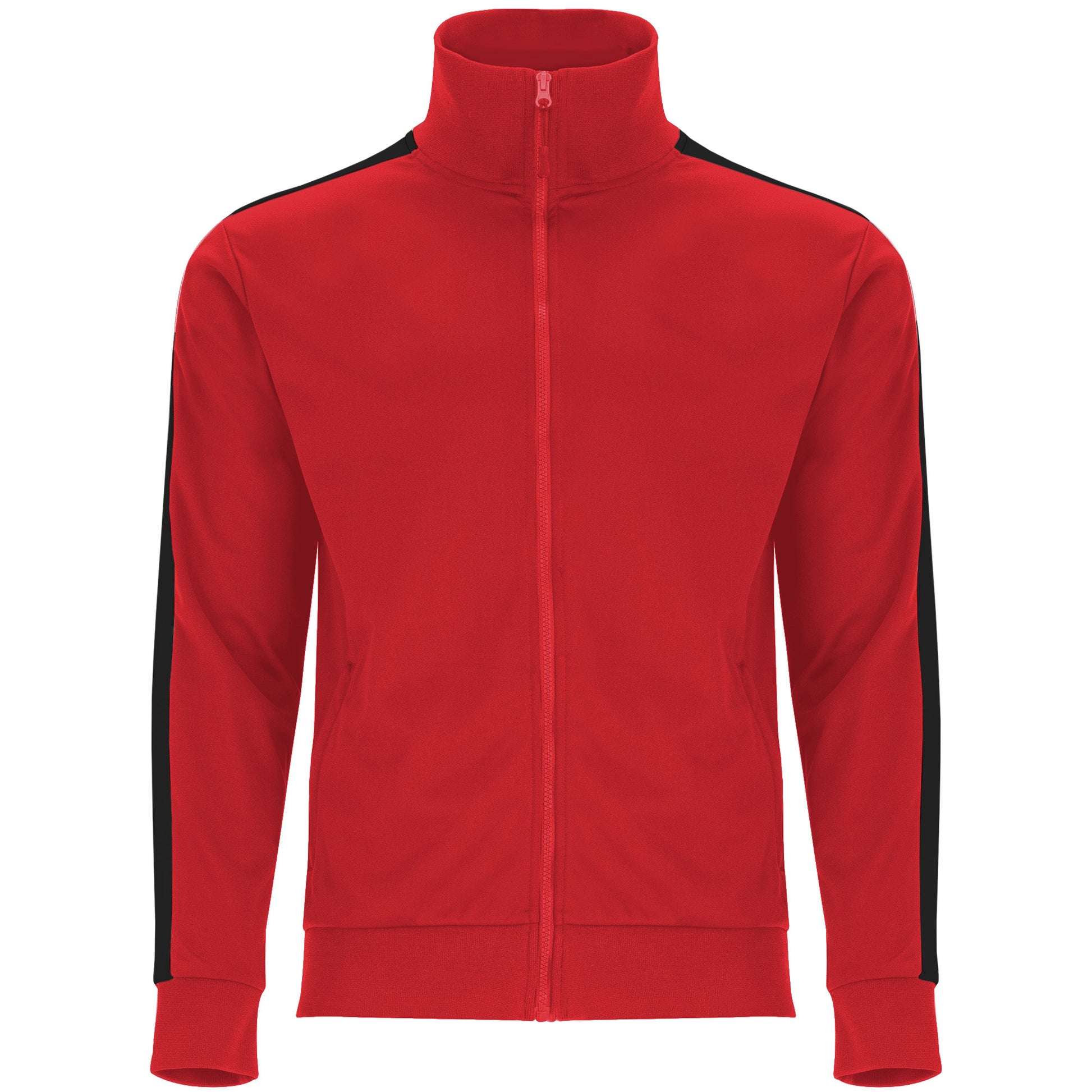 Chándal combinado de chaqueta y pantalón: Cuello alto con cubrecosturas interior a tono. Cremallera central a tono con tirador. Bolsillos laterales de chaqueta con cremalleras. Banda lateral a contraste. Pantalón con cintura elástica y cordón ajustable. Dos bolsillos laterales. Bolsillo trasero con cremallera. Bajo con puños elásticos en canalé 1×1.