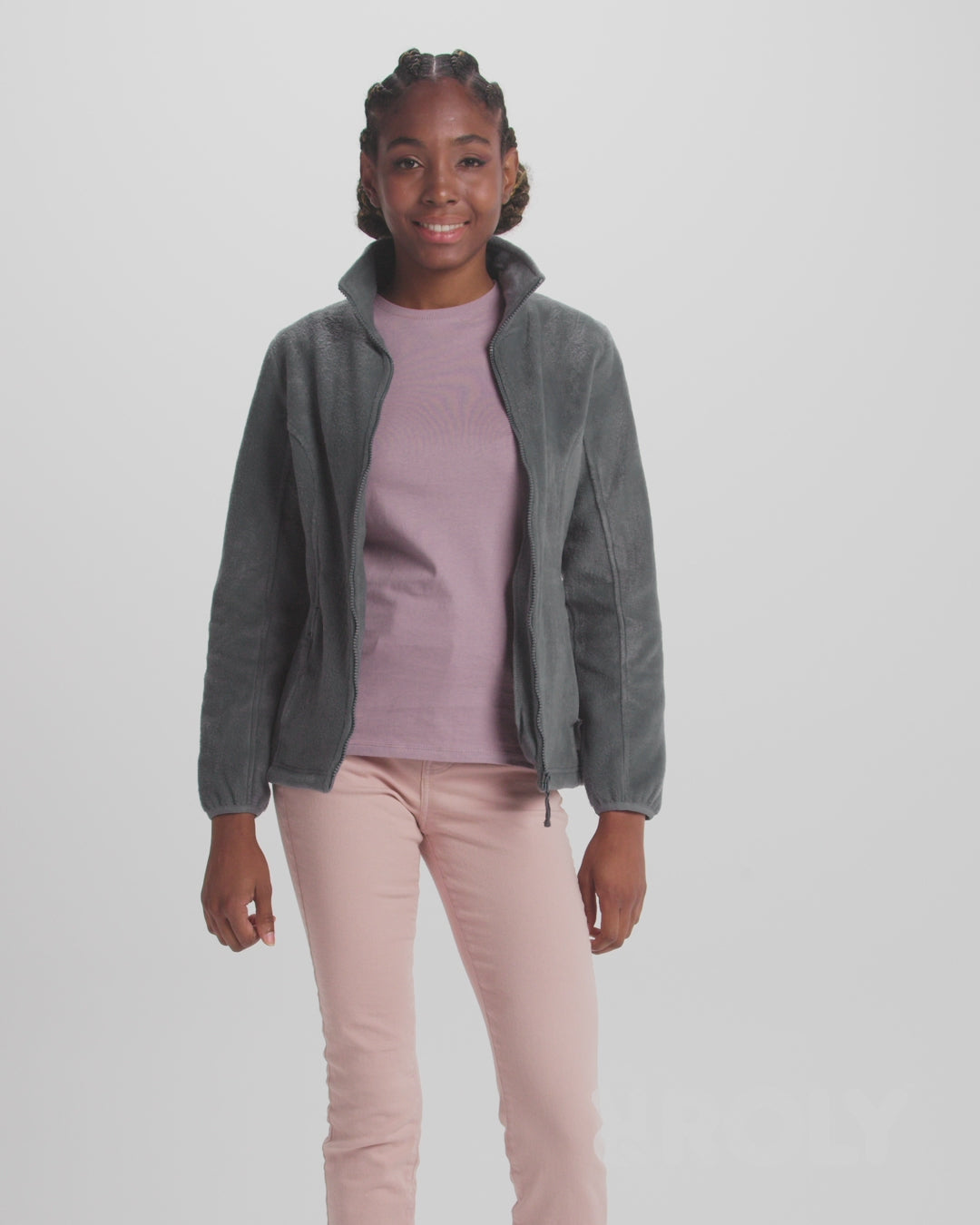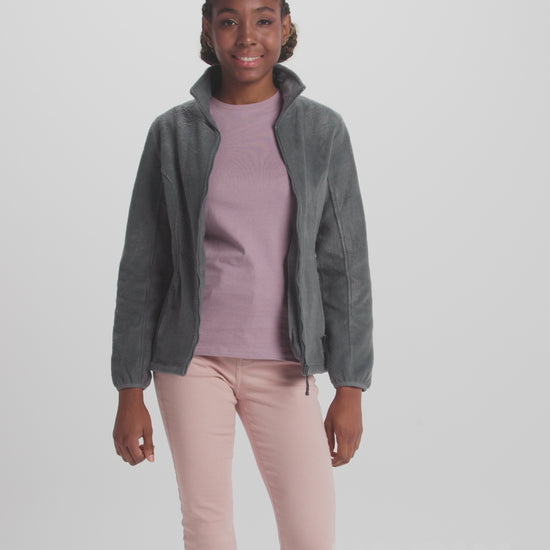 Sudadera polar, con cuello alto forrado y cubre costuras reforzado a tono. Cremallera inyectada a tono con tirador en tejido. Puños con ribete elástico. Bolsillos laterales. Corte entallado. Bajo con ajustadores interiores laterales.