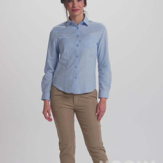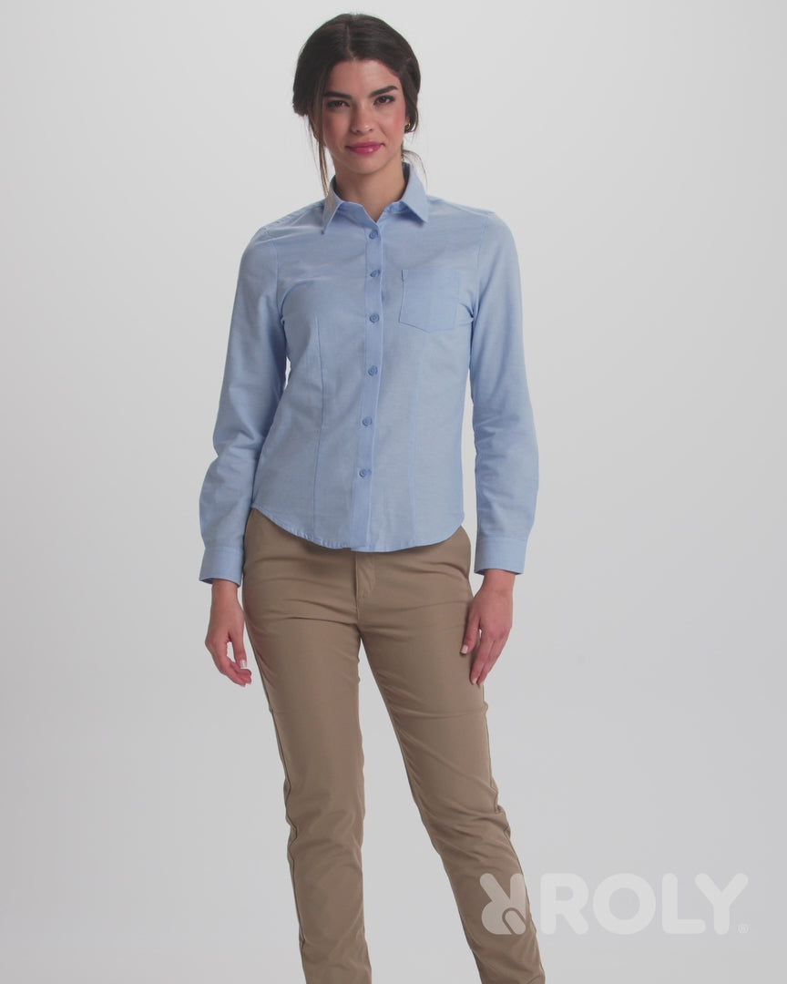 Pantalón largo de mujer. Trabillas para cinturón. Cierre con cremallera y botón. Bolsillos laterales. Bolsillo frontal derecho portamonedas.