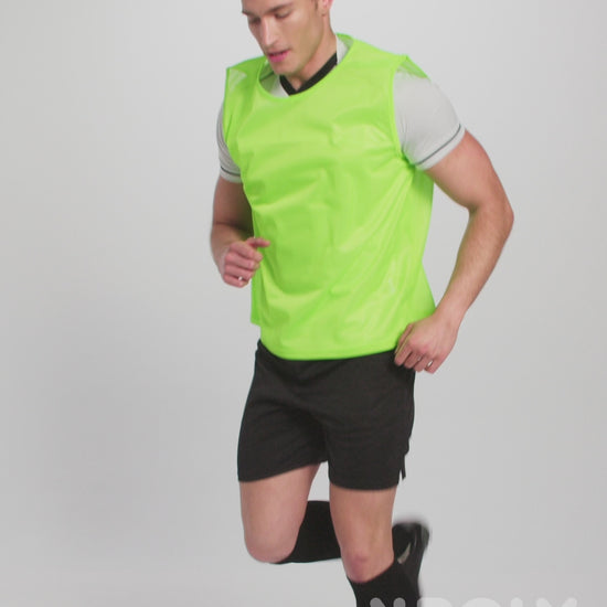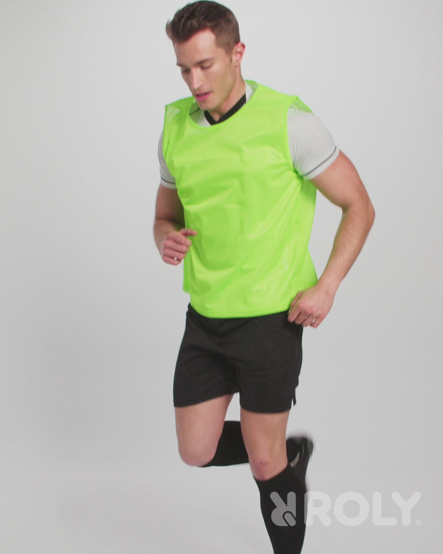 Peto deportivo transpirable unisex. Vivo en el mismo tejido en sisas y cuello. Doble pespunte en el bajo.