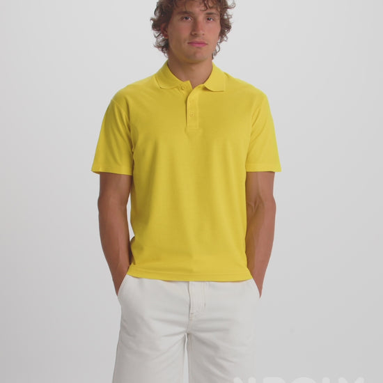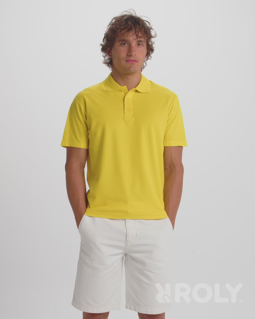 Polo de manga corta, con cuello acanalado y tapeta de 3 botones. Cubrecosturas reforzado en cuello.