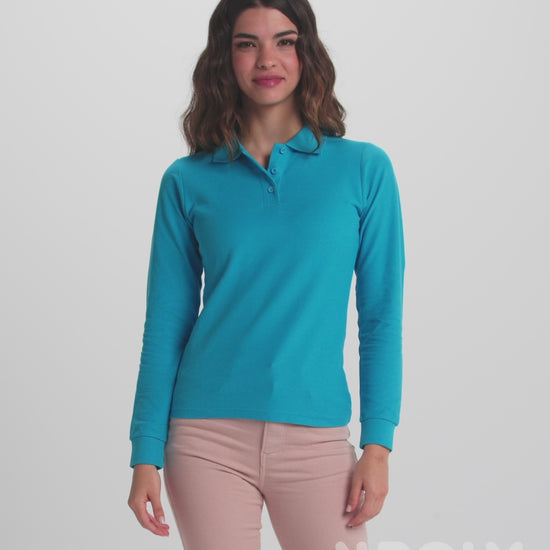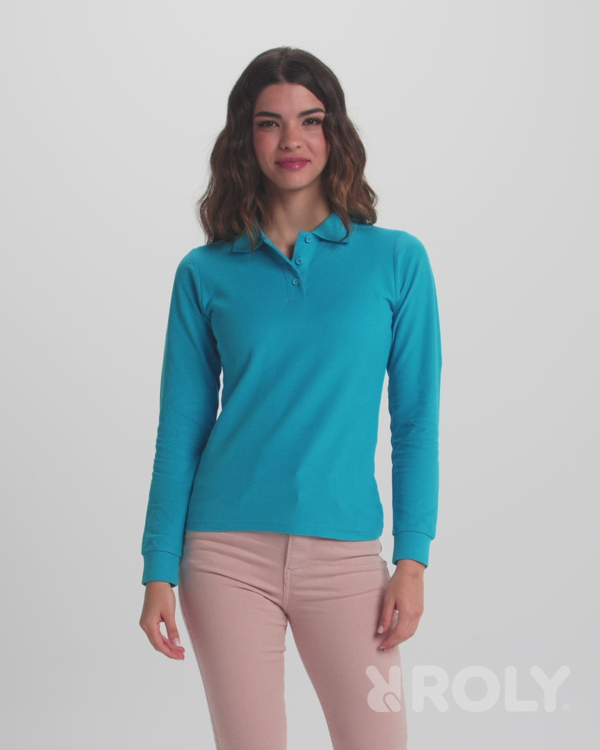 Polo de manga larga con cuello y bocamangas acanalado, tapeta de 3 botones y puños canalé 1×1 con elastano. Cubrecosturas reforzado en cuello, corte entallado.