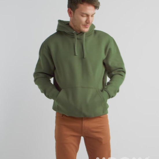 Sudadera con capucha de doble tejido, con cordón ajustable, en acabados solido y bicolor. Cubrecosturas en el cuello y bolsillo canguro. Punto canalé con elastano 1×1 en puños y cintura. Modelo de niño sin cordón.