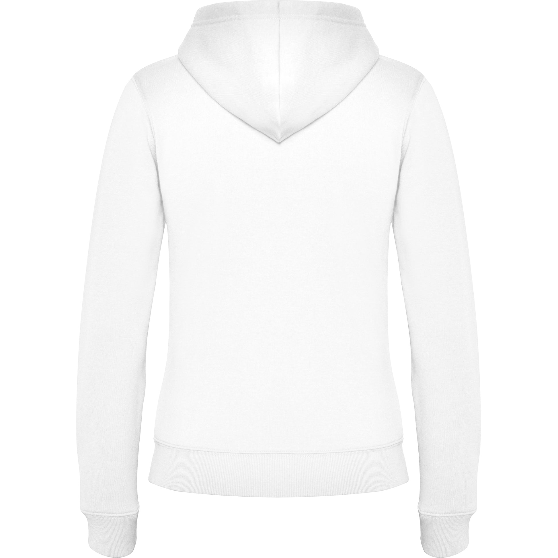 Sudadera de mujer con capucha forrada a tono. Cremallera metálica frontal y bolsillo estilo canguro. Cubrecosturas reforzado en el cuello interior, corte entallado, y punto canalé 2×2 en puños y cintura.