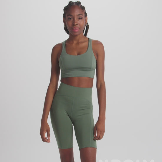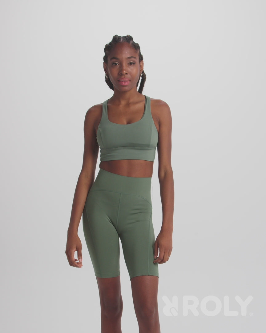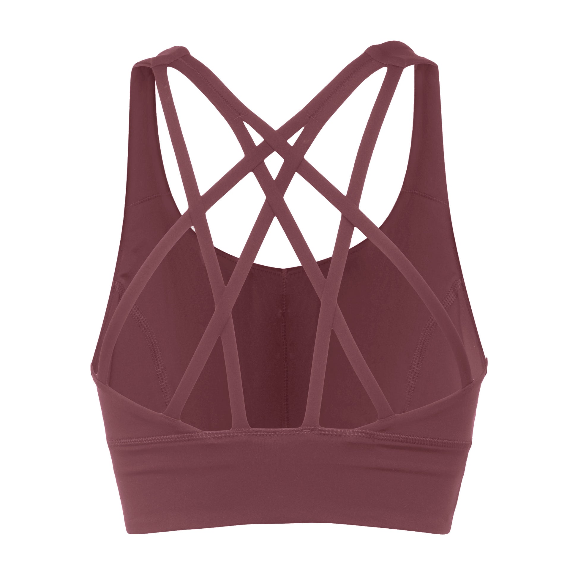 Top técnico de mujer. Tejido transpirable. Espalda con tirantes cruzados de diseño. Sujeción alta.