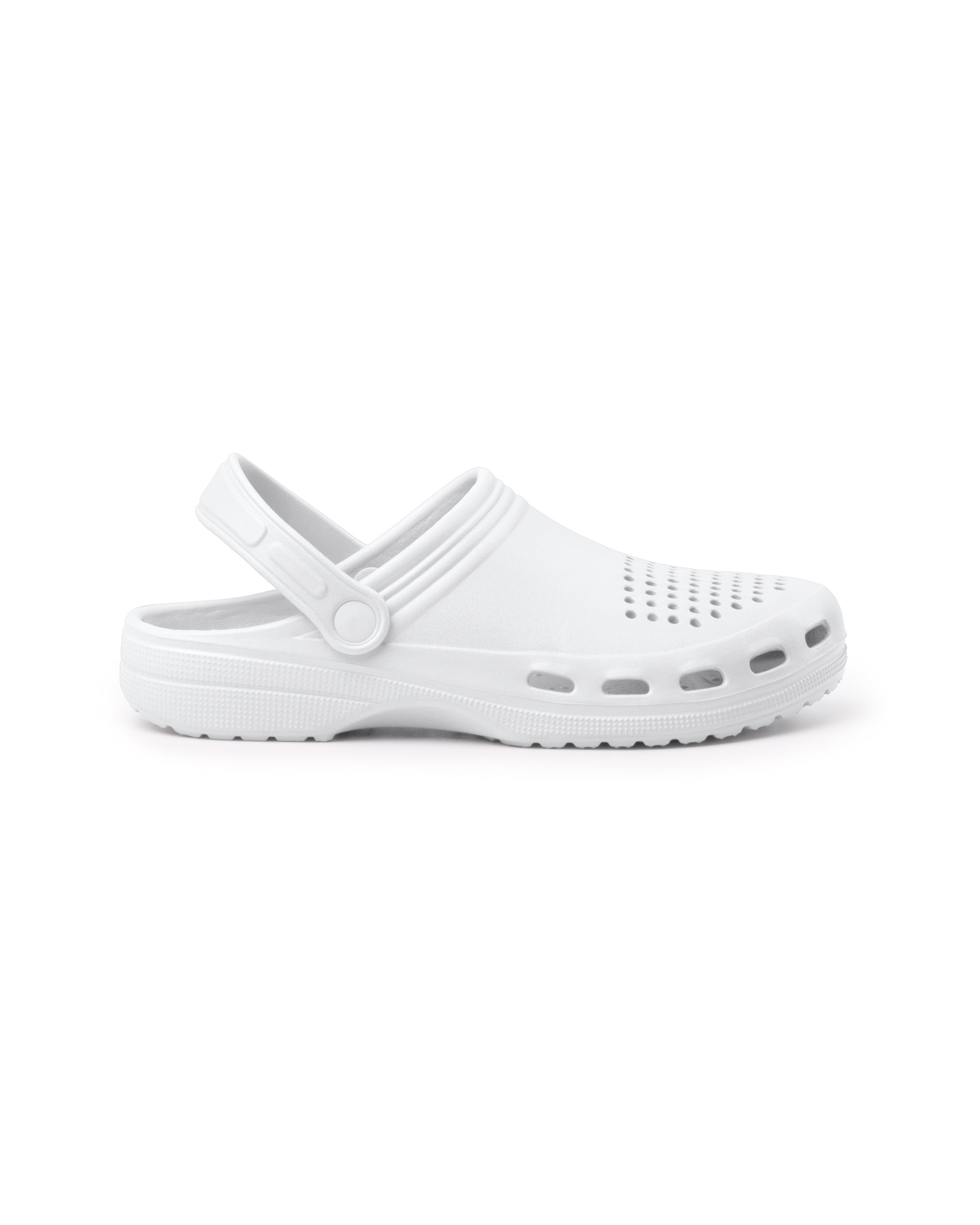 Zueco de máxima comodidad con agujeros de ventilacion. Tira de subjección de doble posición.